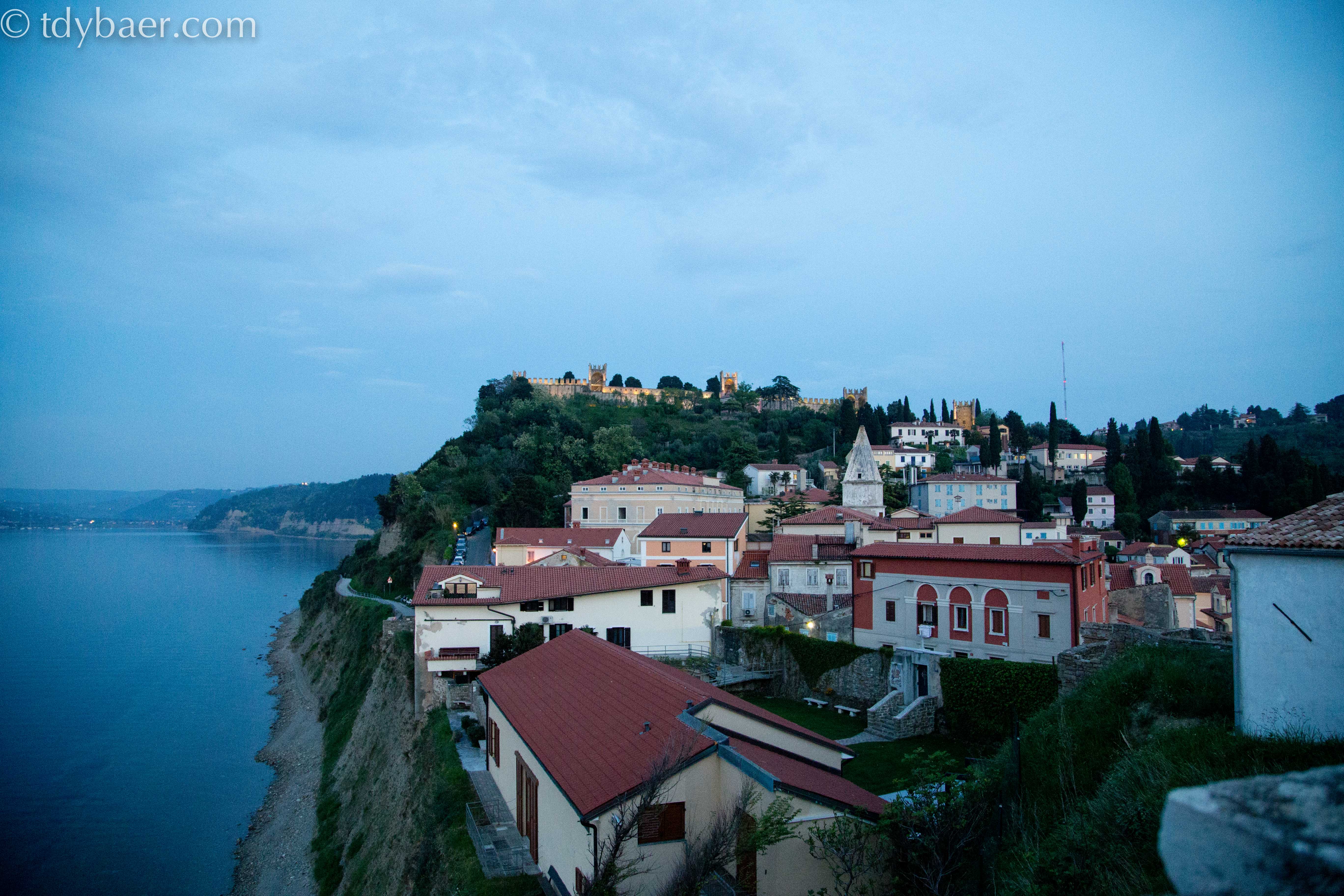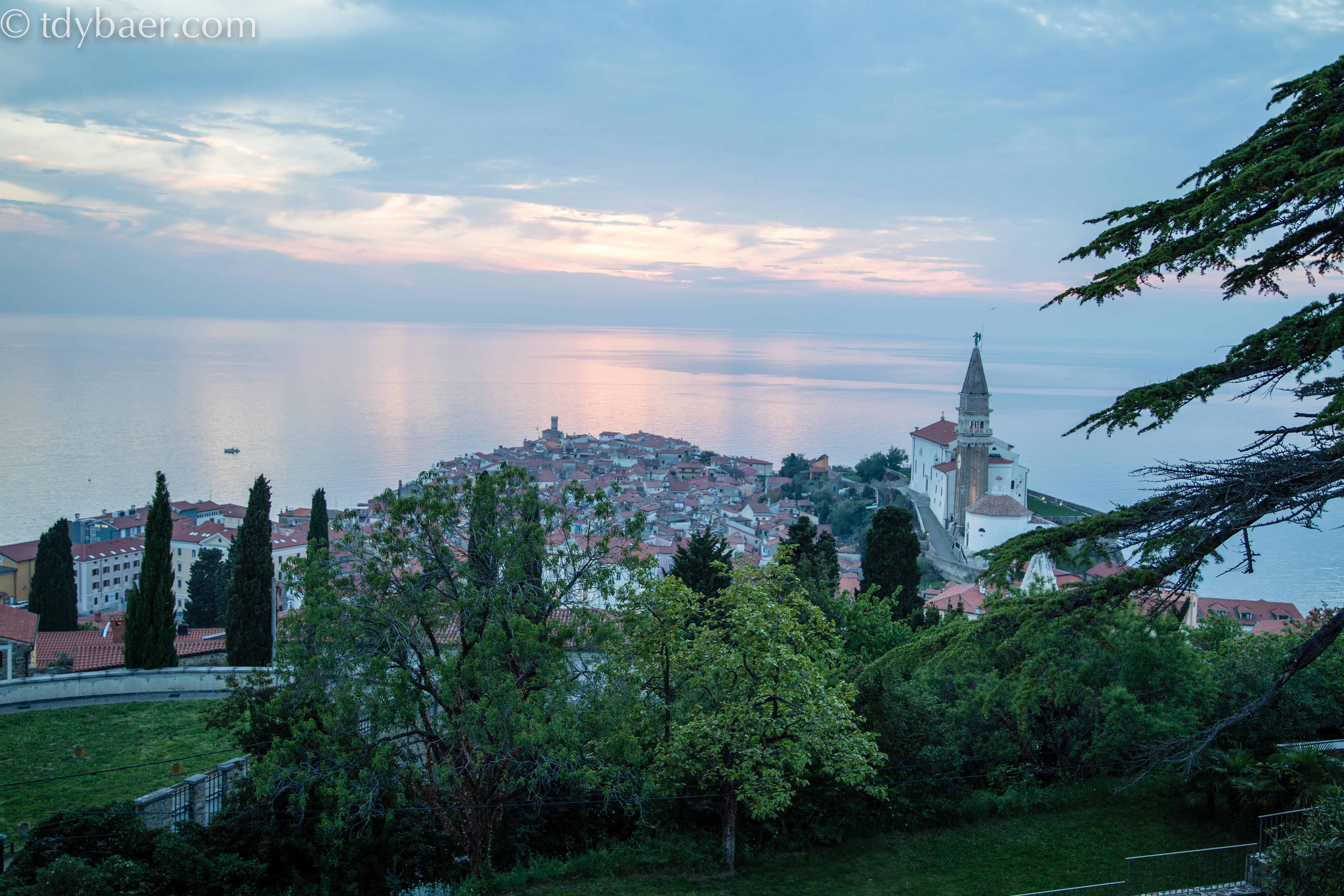 Noch schnell den Sonnenuntergang einfangen und weiter geht der Spaziergang hinauf zur Stadtmauer im Stadtteil Marcana, südlich des Tartini-Platzes.