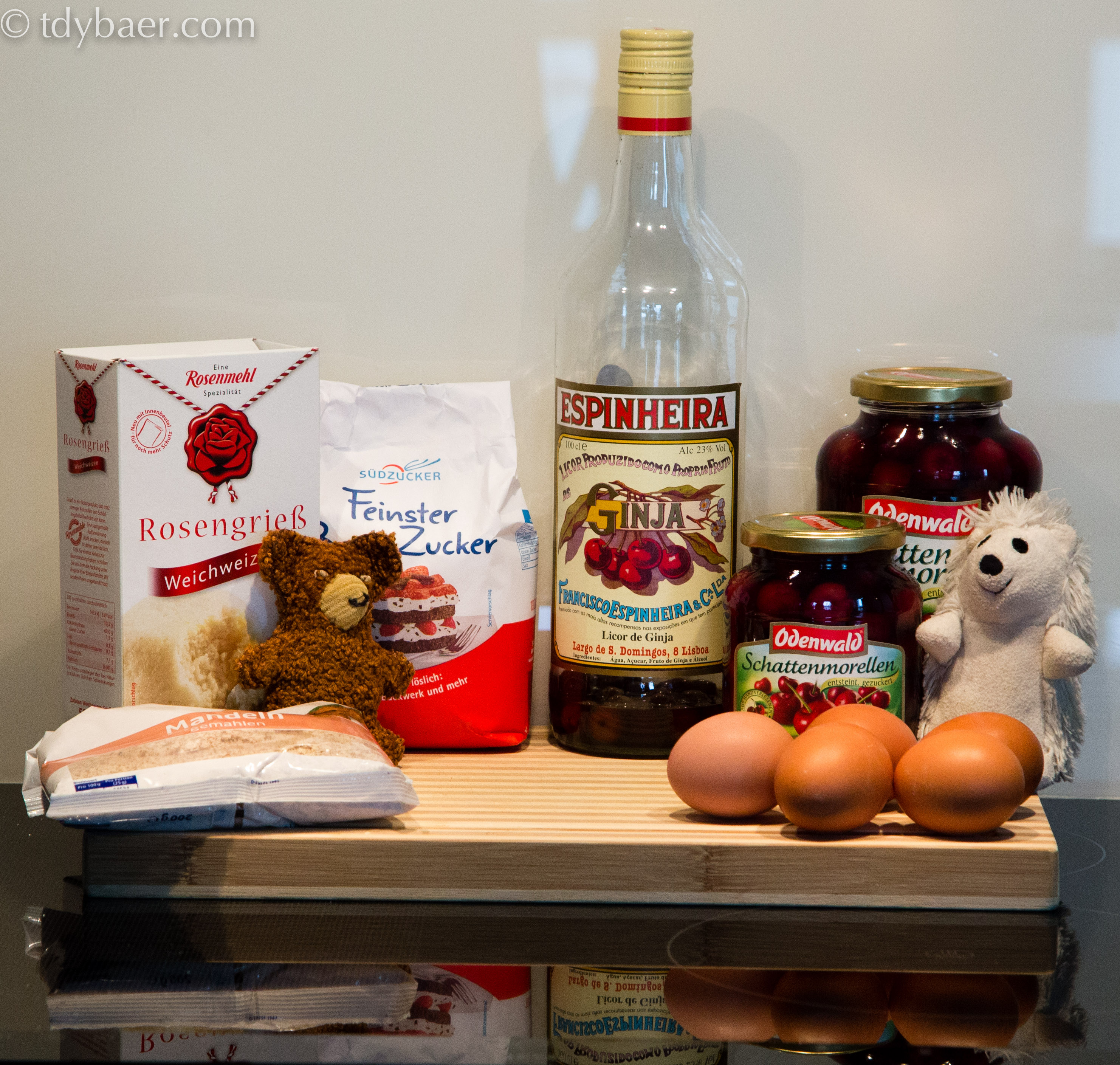 Der Eisigel hatte Geburtstag und so musste eine Ladung Kuchen für die hungrige Meute auf Arbeit her. Gute Gelegenheit mal wieder einen neuen Kuchen auszuprobieren. Mal ganz ohne Butter, Öl oder Mehl – dafür aber mit einem kleinen Schwips. 🙂 Entstanden ist ein leckerer Kirschkuchen aus Grieß, Mandeln und Eiern.IMG_3413 Zutaten für eine Springform mit 24 cm: