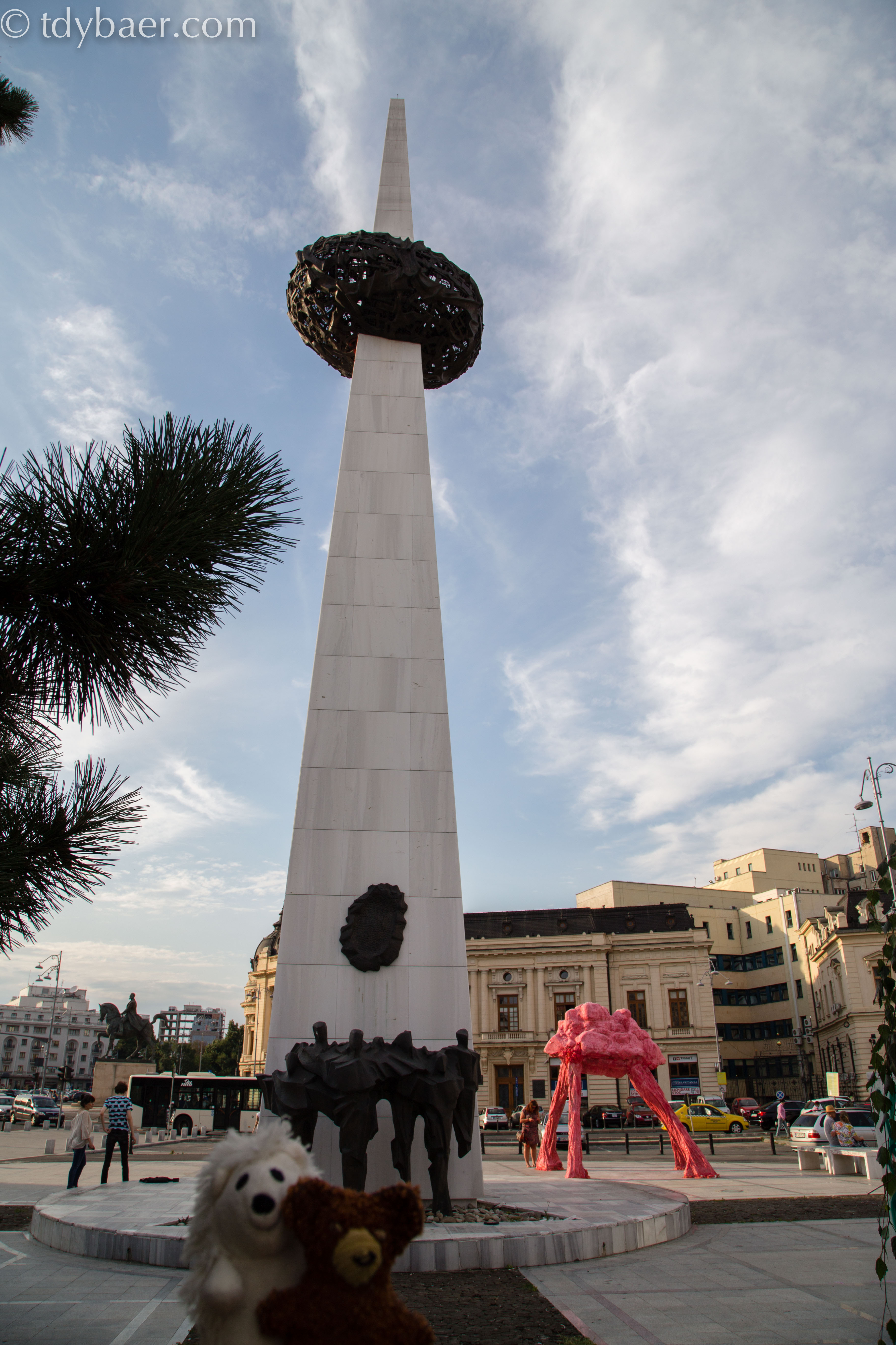 Gleich daneben steht auf dem Vorplatz des früheren Gebäudes des Zentralkomitees der Rumänischen Kommunistischen Partei das „Rebirth Memorial“. Auf dem Balkon des Gebäudes hielt am 21. Dezember 1989 Ceausescu seine letzte Rede um die Massen umzustimmen. Dies klappte aber nicht und er musste per Hubschrauber vom Dach des Gebäudes fliehen. Das Denkmal steht für die „Wiedergeburt“ Rumäniens nach dem Sturz von Ceausescu. Der Platz hat eine große Bedeutung für Rumänien, weil hier die ersten Protestaktionen zum Sturz des Diktators begannen.