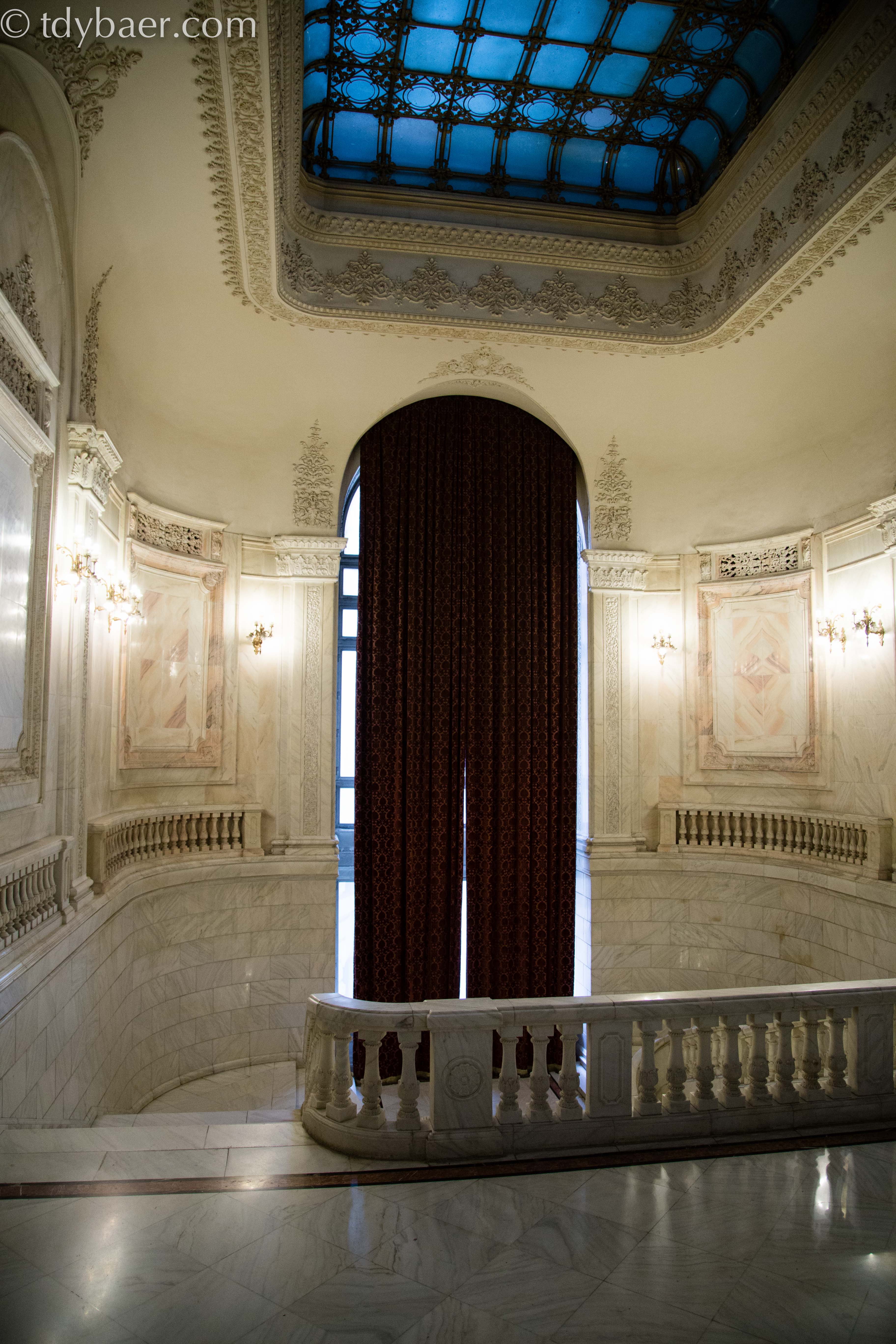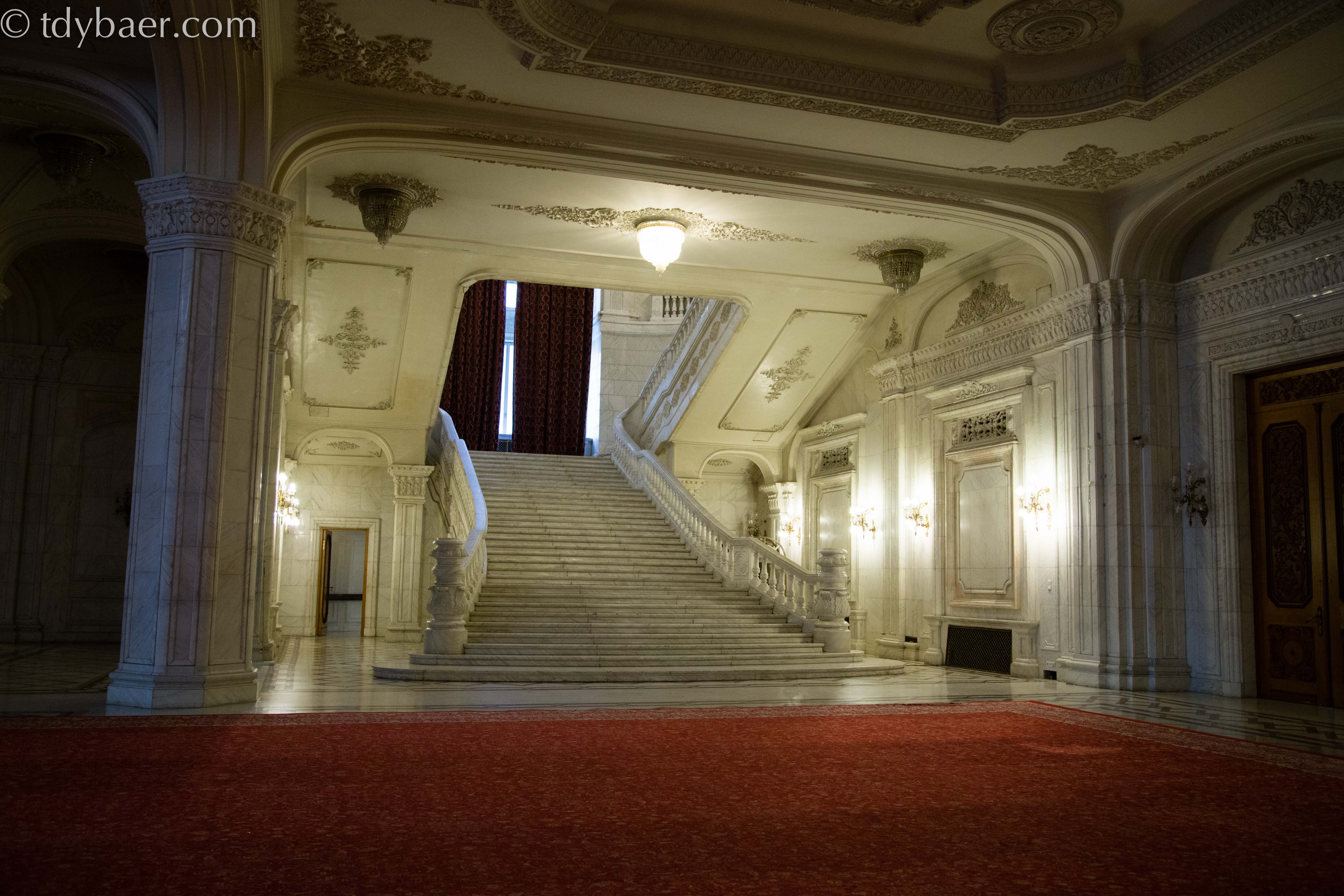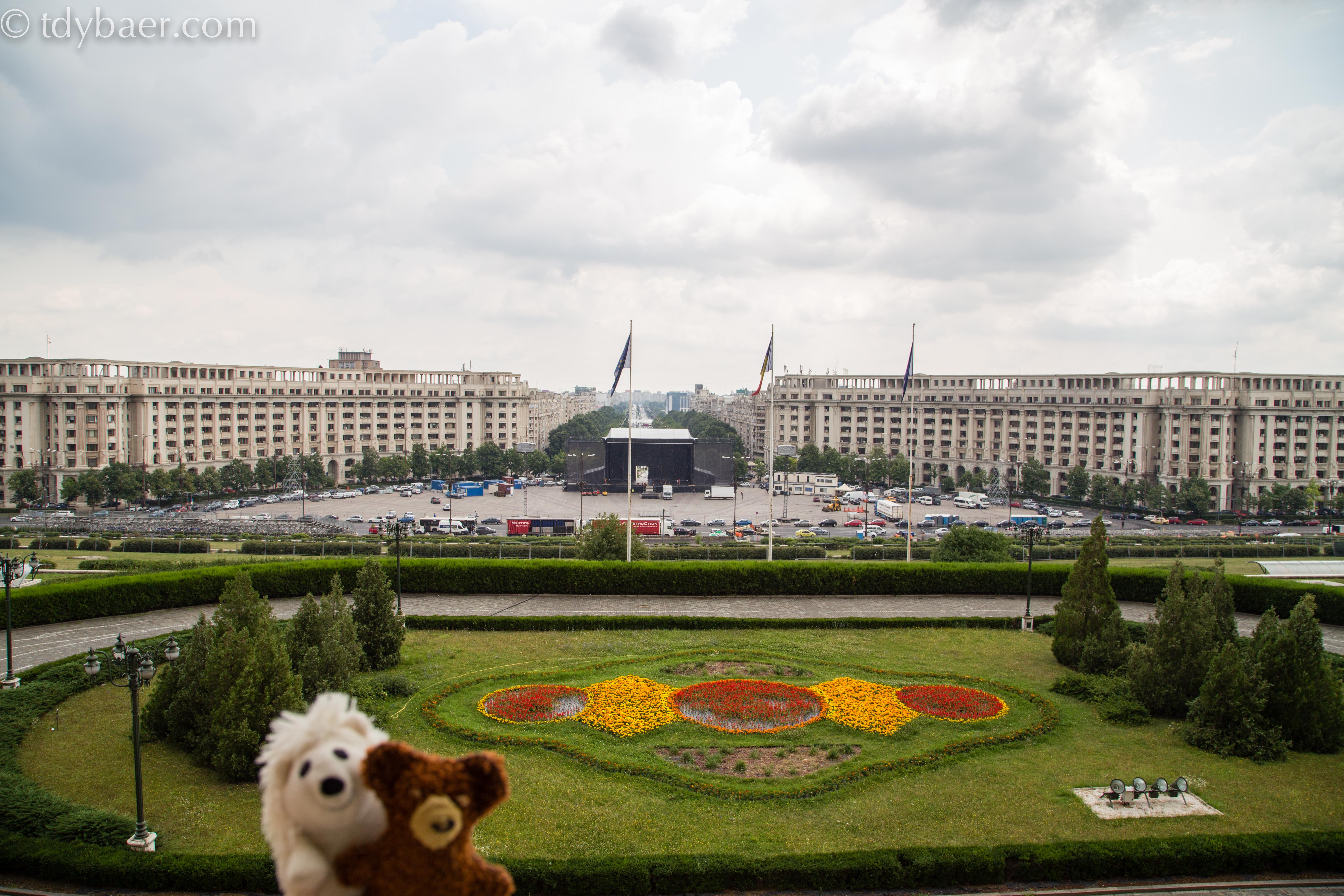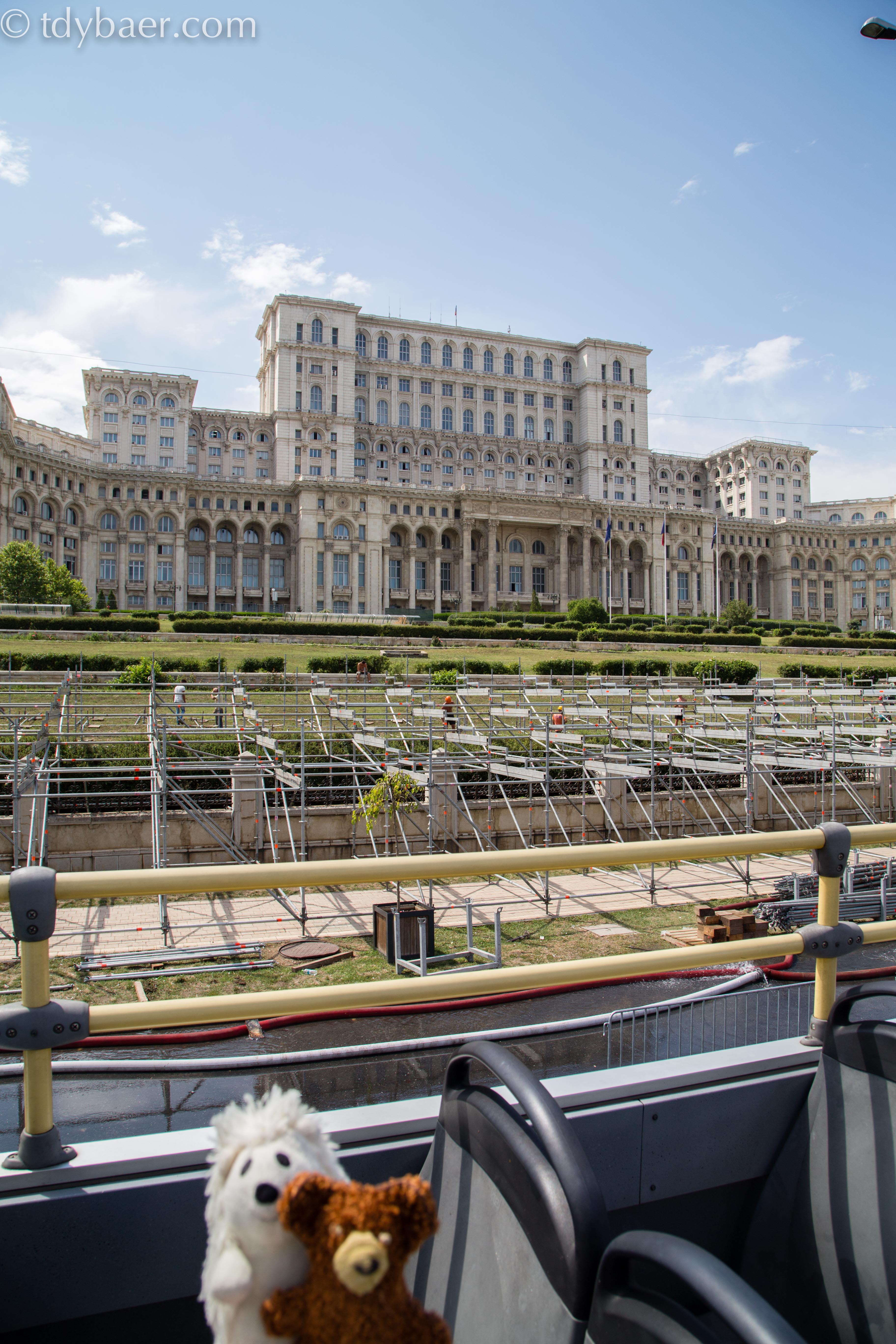 Hat man seinen Reisepass oder Personalausweis dabei, darf man sich einen kleinen Teil dieses riesigen Komplexes auch von Innen anschauen. Das Haus des Parlamentes zählt zu den größten Bauwerken der Welt. Es ist flächenmäßig mit seinen 350.000 qm das zweitgrößte Verwaltungsgebäude der Welt und wird nur vom Pentagon übertroffen. Bevor die Bauarbeiten im Jahr 1984 am „Haus des Volkes“ begannen, wurden bereits seit Ende der Siebziger Jahre rund 40.000 Wohnungen, über 20 Kirchen und ein paar Synagogen abgerissen. Dabei wurde auch ein Kloster aus dem 16. Jahrhundert umgesiedelt.