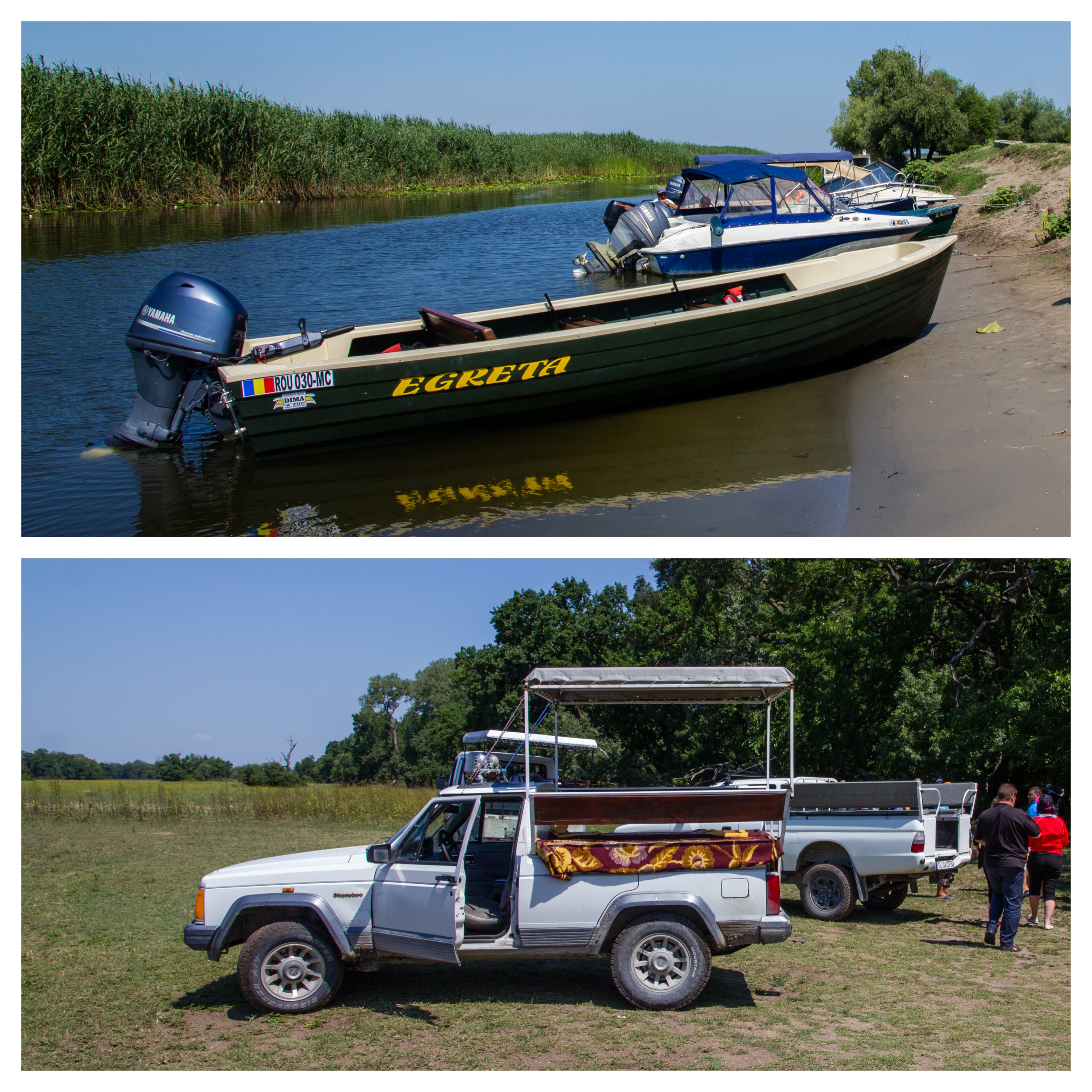 Unser Kapitän gab kräftig Gas und wir sausten auf dem Kanal entlang. Irgendwann bogen wir in einen alten Nebenarm ab von dem aus wir den noch kleineren Kanal Magearu erreichten und alsbald in Letea anlandeten. Von hier aus sind es noch rund 5 km bis zur ukrainischen Grenze. Wir wechselten das Gefährt und stiegen von unserem Schnellboot in auf einen umgebauten Geländewagen um.
