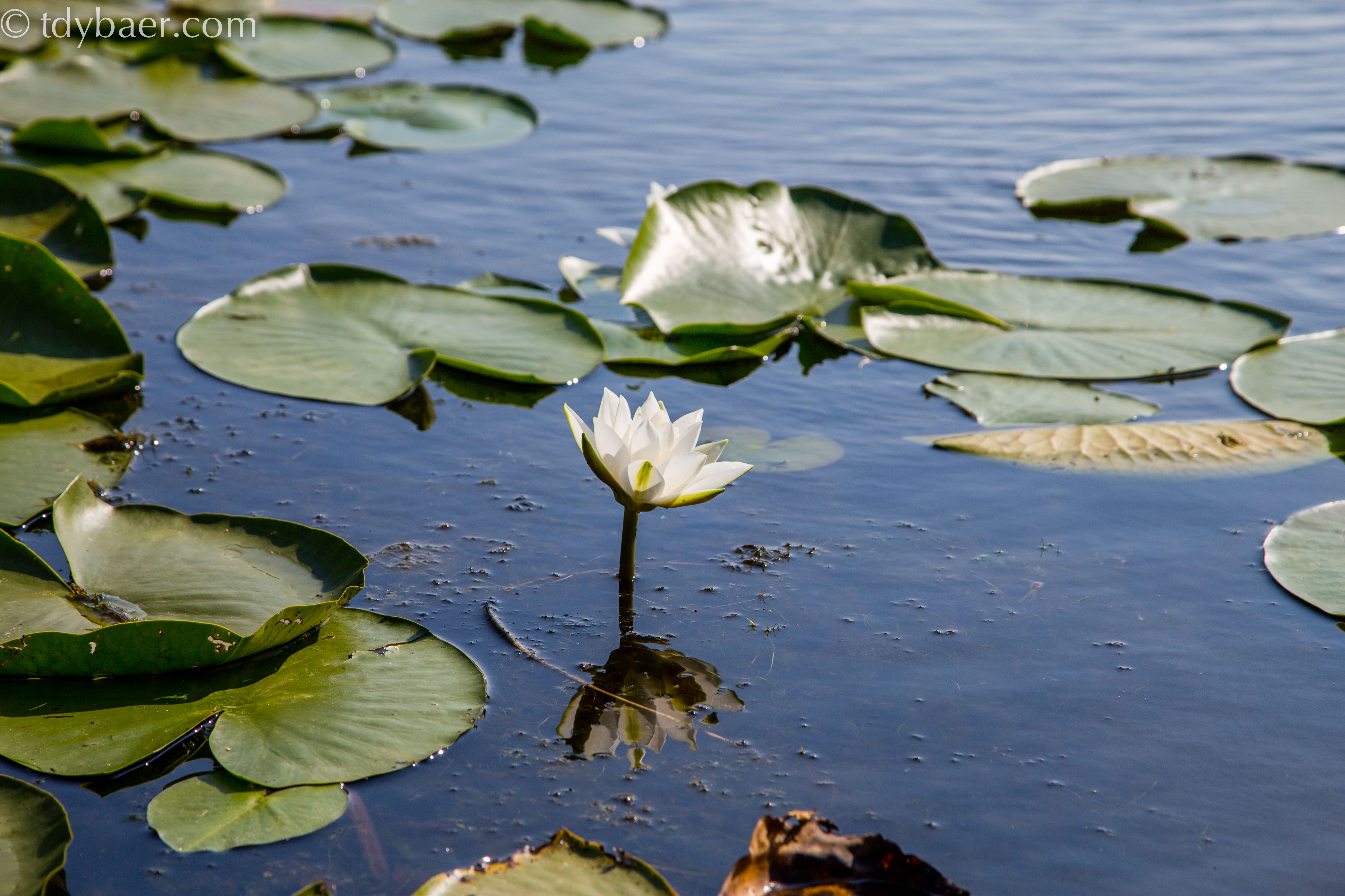 Neben den Pelikanen sind die vielen Seerosen ein weiteres Highlight. Unser Kapitän musste hin und wieder den Rotor des Motors von jeder Menge Grünzeug befreien.