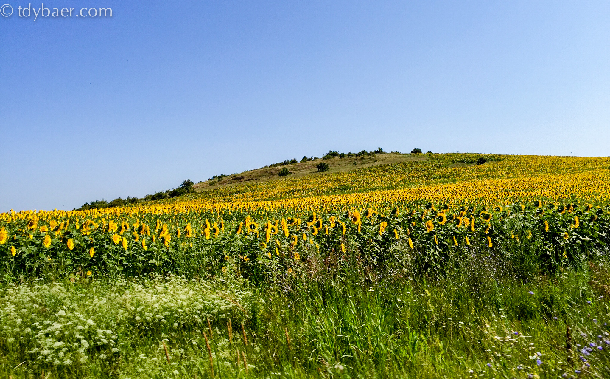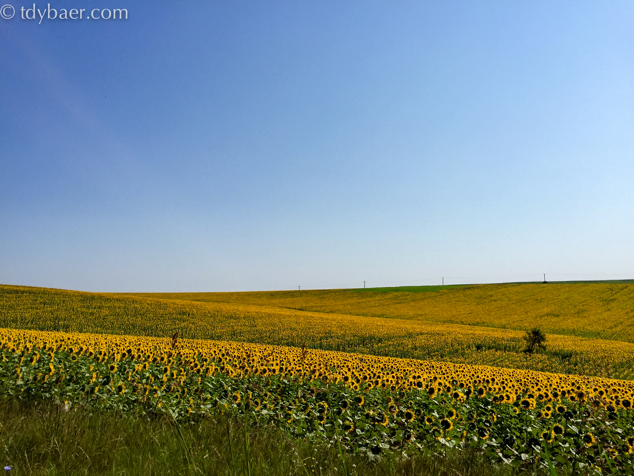 Der Weg beeindruckte mit unzähligen Sonnenblumen. 🙂 Die vielen Sonnenblumenfelder reichen bis zum Horizont und nehmen einfach kein Ende – echt der Wahnsinn :-).