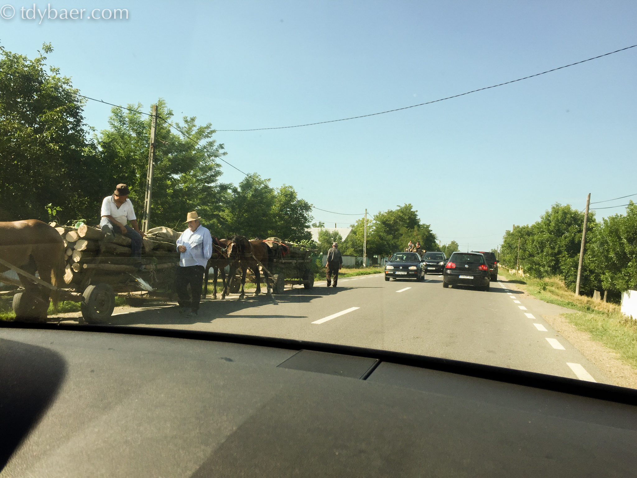Hin und wieder geht es auch mal etwas langsamer voran, wenn die noch zahlreichen ursprünglichen Transportmittel mit Pferd und Wagen unterwegs sind.