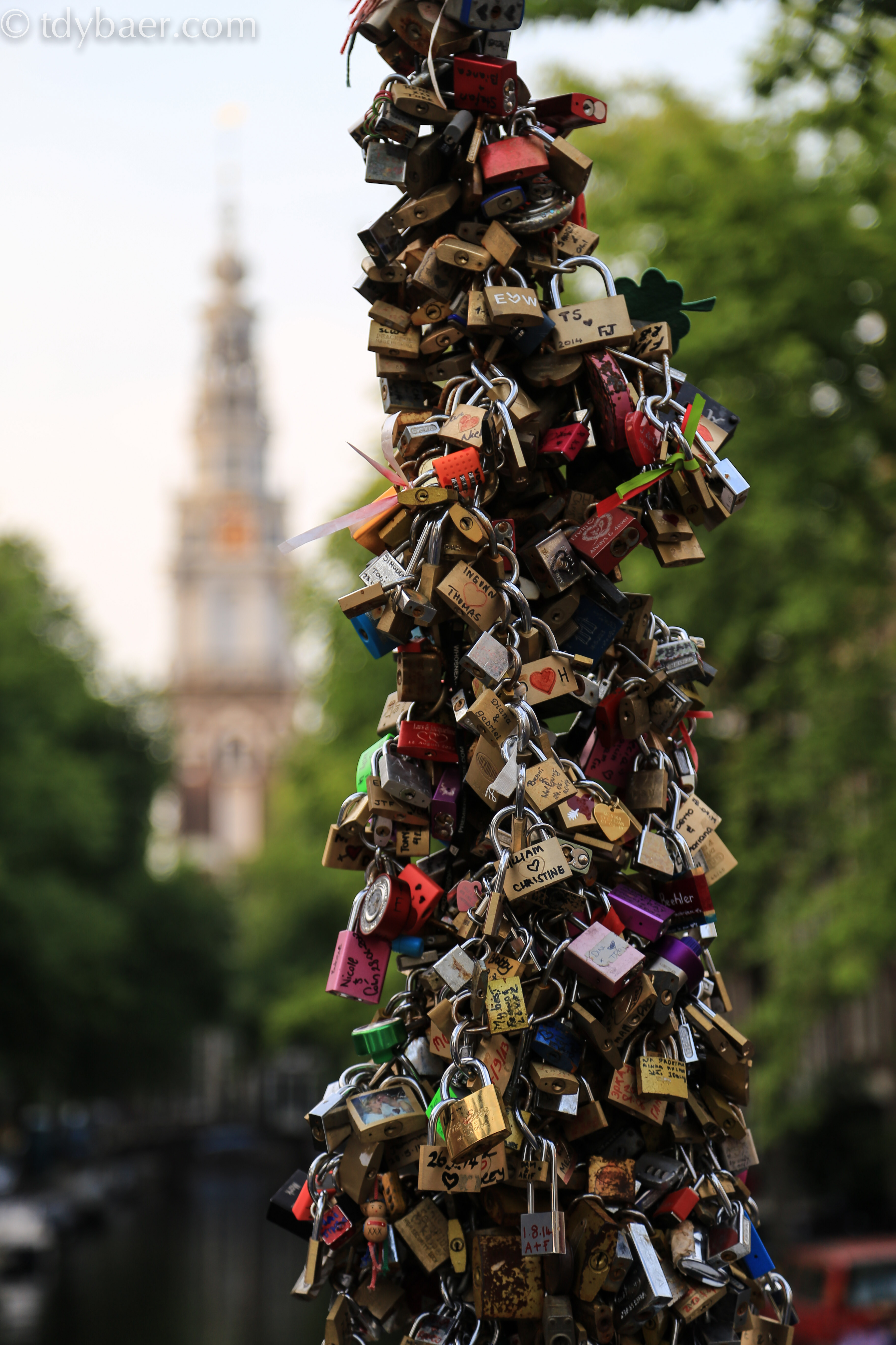Auch eine lustige Art die Schlösser an einer Brücke festzumachen 🙂 – an der Groenburgwal nahe des Opernhauses.