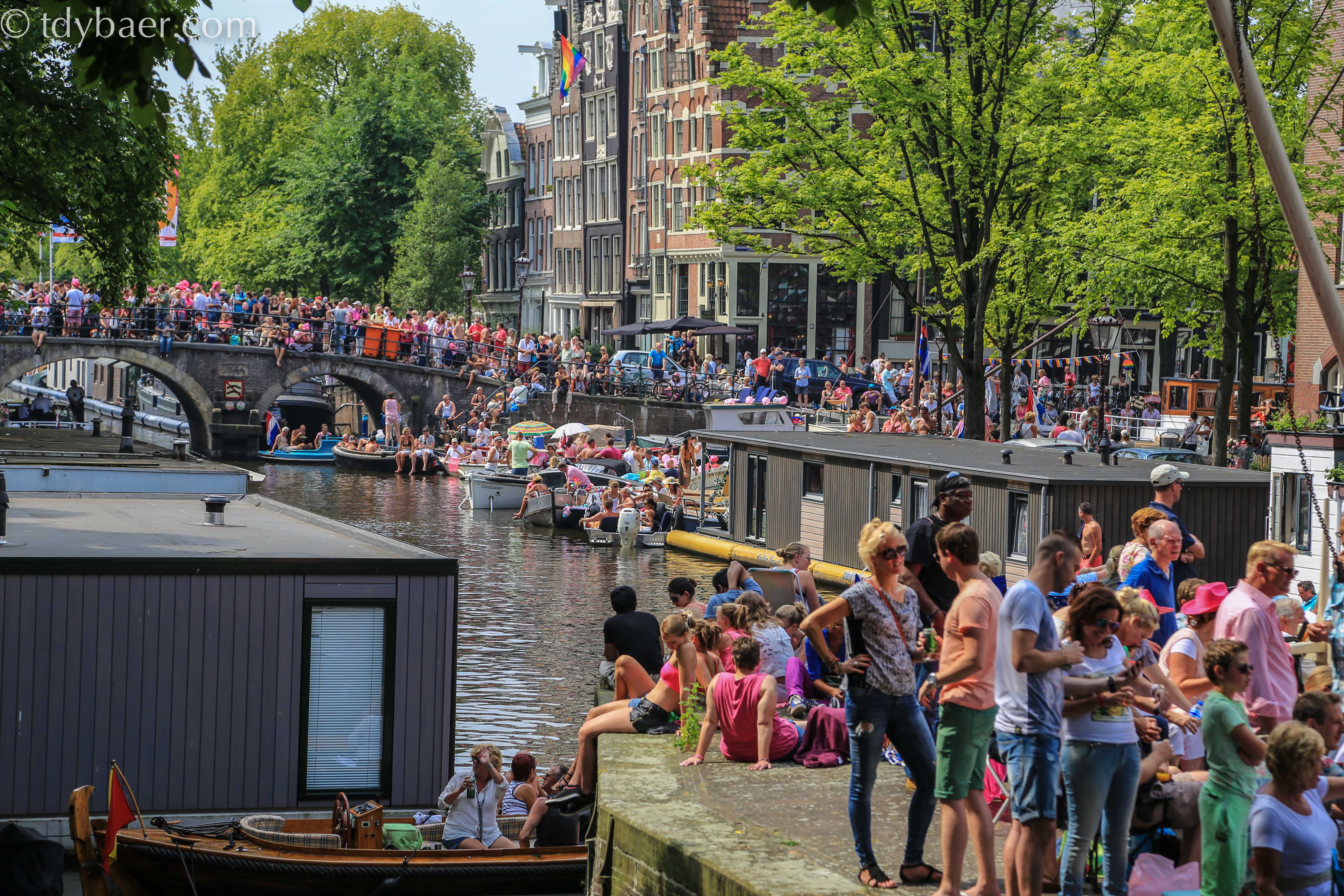 Wenig später startete auch schon die Gay Pride. Tausende Leute waren auf den Beinen und versuchten ein gutes Plätzchen zu bekommen um auf die vorbei fahrenden Boote schauen zu können.