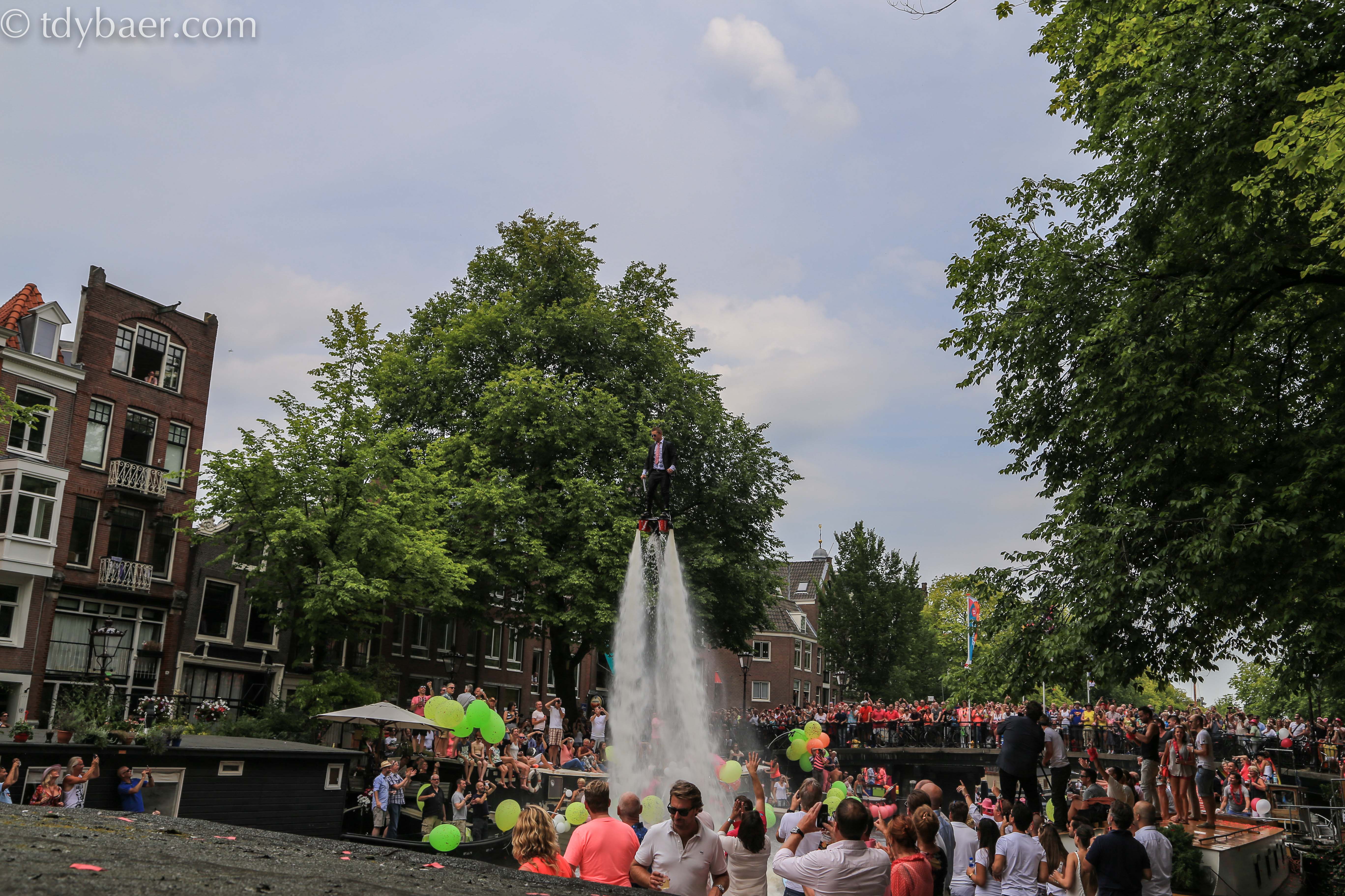 Ein cooler Stuntman mit Wasserdüsen unter den Füßen – wirklich beeindruckend, auch wie er damit unter der Brücke durchgekommen ist.