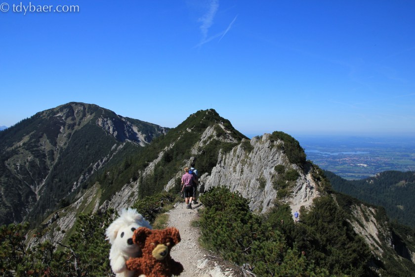 Heute erzählt euch Tdy von der anspruchsvollen (krassen) Tour zur Soiernspitze. Die ist nix für Couch Potatoes. Genau eine Woche nach unserer Bergwanderung „Gratweg Herzogstand-Heimgarten„, machten wir uns auf den Weg in das Karwendelgebirge bei Mittenwald. Der Startpunkt unserer Tour ist der Parkplatz am Seinsbach vor Mittenwald. Kurz vor 9 Uhr starteten wir unsere 21 km lange Tour mit rund 1400 Höhenmeter. Hätten wir das vorher mal gewusst … Wir folgten der breiten Forststraße Richtung Vereineralm stetig bergauf. Ein paar Mountainbiker versuchten hier sogar mit dem Rad hochzufahren – was für eine Qual ;-). Nach ungefähr einer dreiviertel Stunde und 3,2 km erreichten wir den Abzweig zur Soiernspitze. Direkt am Abzweig steht die kleine Ochsenalm. Hier machten wir es uns in der Sonne gemütlich und aßen erst einmal unsere selbst belegten Brötchen zum Frühstück, bevor es weiter steil bergauf ging. Vorbei geht es am Felderngraben und langsam geben die Bäume den Blick frei auf die schöne Landschaft um das Karwendelgebirge. Stetig wird es steil und steiler. Hier mal ein Blick nach unten – da sind wir …