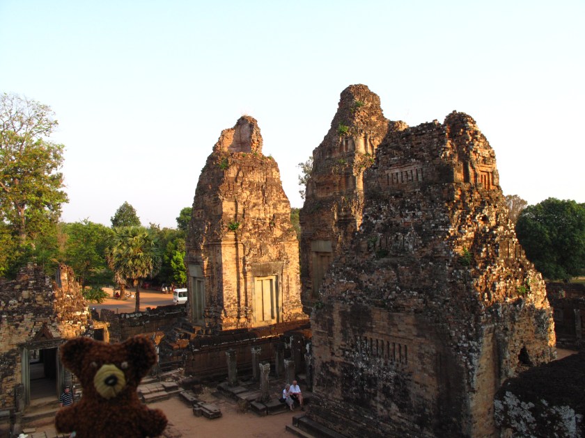 Nach dem Frühstück holte mich mein Guide ab und brachte mich zum Flughafen (Flug: Cambodia Angkor Air). Heute gehts zu meiner letzten Station auf meiner Reise und ich freu mich ganz besonders drauf. Als ich bereits als kleiner Bär die Bauten von Angkor das erste Mal in meiner „National Geographic“-Ausgabe gesehen habe, wollte ich unbedingt mal dorthin. Die Angkor Tempelanlage hat die dichteste Ansammlung von Tempeln auf der Welt und ist seit 1992 UNESCO-Weltkulturerbe. Bevor ich zu den ersten Besichtigungen am Nachmittag aufbrach, entspannte ich noch etwas im Hotel (Bopha Angkor). Der erste Tempel, den ich besuchte, war der Preah Khan. Die Tempelanlage hat eine Fläche von 50 Hektar und wurde Ende des 12. Jh. als Tempel und Klosterschule erbaut. Hier steh ich am Eingang: Und hier mittdendrin :-): Ein sehr schöner Tempel und auch schon etwas vom Urwald eingenommen. Und ab gehts zum nächsten Tempel, dem Neak Pean. In der Mitte dieses Wassertempels befindet sich ein Heiligtum, dass eine Lotusknospe darstellt, in der sich ein meditierender Buddha befinden soll. Am Rand dieser „Insel“ stehen …