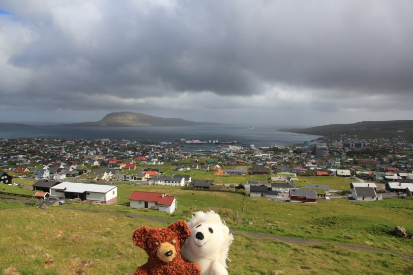 Nach so vielen Tagen Sonnenschein, schickte uns der Wettergott heute ein paar Wolken und eine kräftige Brise. Dem einen oder anderen hats sogar die Mütze vom Kopf geweht. Achja, heute besuchten wir die Färöer. Allen die hier noch das Wort Inseln anhängen sei gesagt: „Ganz Falsch!“ :-). Der Name Färöer bedeutet nämlich Schafsinsel. Noch ne Insel angehangen wäre doppelt gemoppelt.  Die Färöer sind seit 1948 selbständiges Mitglied des dänischen Reichsverbandes. Die Inselgruppe besteht aus 18 Inseln mit zusammen 1.399 qkm und hat eine Küstenlänge von 1.100 km. Die meisten der 48.000 Einwohner sind direkte Nachfahren der aus den Nordländern stammenden Siedler und die altnordische Sprache Färöisch ist die Landessprache. Rund 20.000 Färinger leben im Gebiet der Hauptstadt Torshavn auf der Hauptinsel Streymoy. Gegen 11 Uhr legte die Fram im Hafen an und der Eisigel und ich hatten vor unserem Ausflug noch Zeit für einen Bummel durch die Stadt. Also machten wir uns auf um uns den alten Stadtteil Tinganes anzuschauen. Hier stehen noch viele gut erhaltene Häuser mit den tollen Grasdächern. Als Rasenmäher dient meist …