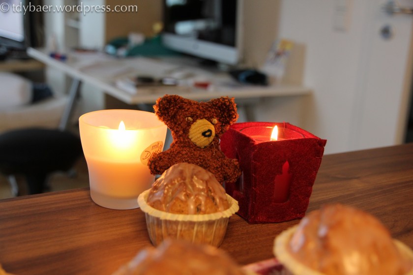 Da es ja draussen viel zu warm für Glühwein ist und damit er auch nicht im Schrank verstaubt, bäckt man sich am Besten leckere Muffins. Wichtig ist es, einen guten Glühwein zu verwenden. Ich habe mir dafür den Bio Kunzmann Glühwein gekauft. Ein sehr leckerer Glühwein. Zutaten für 12 Muffins: 250g Mehl 2 TL Backpulver 1 Prise Salz 1/2 TL gemahlener Zimt 1/2 TL gemahlener Cardamon 1 Ei 80 ml Öl 80g Zucker 200 ml kalter Glühwein 1 Pck. Vanillezucker 50 ml Milch 125g Puderzucker und 2-3 EL Glühwein für den Guss Grafisch schaut das so aus: Zu Beginn das Mehl mit Backpulver und den Gewürzen mischen. Das Ei mit dem Zucker, dem Vanillezucker und dem Öl verrühren bis sich der Zucker gelöst hat. Zu der Ei-Mischung kann man jetzt den Glühwein und die Milch geben und alles schön verquirlen. Jetzt siebt man nach und nach die Mehlmischung darunter und verrührt alles zu einer glatten grauen Masse :-). Achja, den Backofen vorheizen nicht vergessen (200°). Die Masse in Muffinförmchen füllen und ab damit in den …