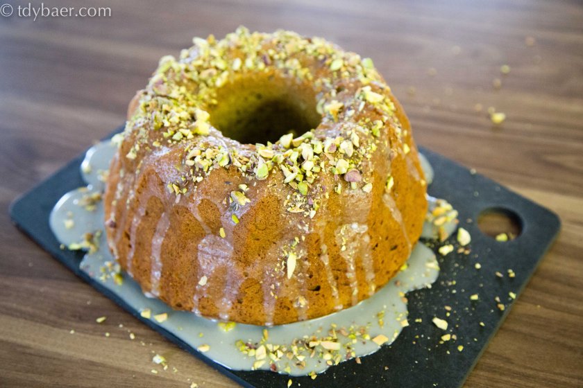 Was macht eine Avocado in einem Gugelhupf? Sie macht ihn schön grün, saftig und hält ihn länger frisch. Diesen tollen Kuchen muss man einfach probieren :-). Zutaten: 60 g Pistazien – 40 g fein gehäckselt und 20 g gehackt 75 g gemahlene Mandeln 525 g Mehl 25 g Weinsteinbackpulver 350 g weiche Butter + etwas zum Fetten 2 Bio-Limetten 270 g Zucker Salz 6 Eier Kl. M 2 reife Avocados 8 El Milch 100 g Puderzucker Gugelhupfform mit 2 L Inhalt (oder zusätzlich Muffins backen) Wenn man den Pisatzien-Schäl-Marathon hinter sich hat, kann es mit der Vorbereitung endlich losgehen. Die 40 g gemahlenen Pistazien werden mit dem Mehl, den Mandeln und dem Backpulver vermischt. Von den Limetten die Schale abreiben und anschließend 7 El Saft auspressen. Anschließend das Avocadofruchtfleisch mit 4 El Limettensaft fein pürieren. In einer großen Schüssel werden die Butter, der Zucker, die Limettenschale und eine Prise Salz min. 8 Minuten lang zu einer schönen cremigen Masse verrührt. Die Gugelhupfform einfetten und den Backofen auf 170 Grad oder 150 Grad Umluft vorheizen. In die cremige …
